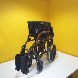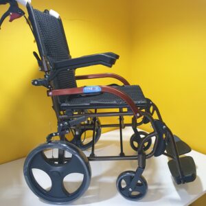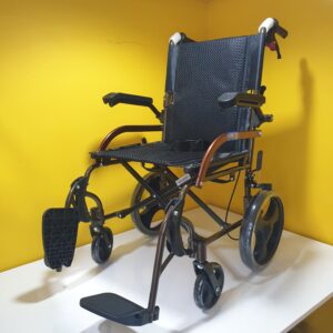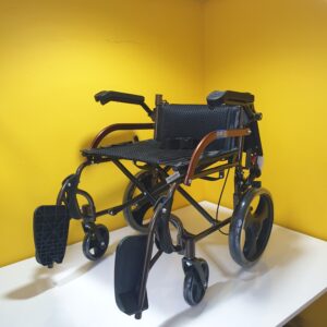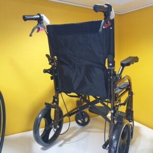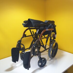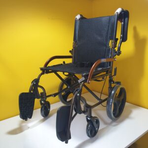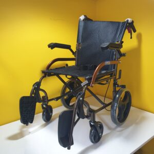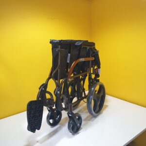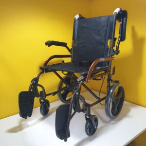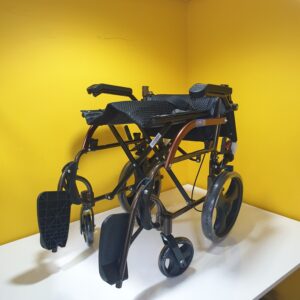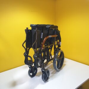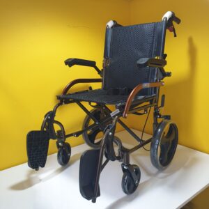 Manuel tekerlekli sandalye hava alan kumaş yapısına sahiptir,kumaşı silinebilirdir,Refakatçi kullanımına uygundur,refakatçi için ekstra olarak tutma kollarında kilitlenebilir fren mekanizması vardır.Kolçakları aşağı yukarı hareket etme kabaliyetine sahiptir.Ayak koyma pedalları hareketlidir.Oturma yeri genişliği 44cm dir.Katlandığında taşımak için elcikleri vardır.