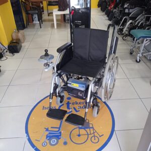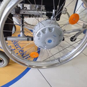 Arka tekerleklerine bağlı motorlar sayesinde sürüş imkanı sağlar,Oturma alanının hemen altında kendi özel çantasının içinde aküleri bulunmaktadır,ev içinde ve dışarıda kullanımı çok rahattır.İster akülü ister manuel olarak kullanabilirsiniz.Toplam ağırlığı 25 kg dır