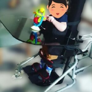 Boyun ve skolyoz eğriliğinde yanı sıra serapral palsi,sma ve çocuk felcinde rahatça kullanılabilecek önünde yemek masası bulunan özel üretim cihazdır.