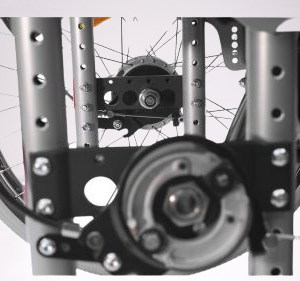 Açılı ön çerçeve, tekerleklerin daha fazla yatay konumlandırılmasına ve daha iyi ileri stabiliteye olanak tanır. Tekerlek muhafazası hizalaması kolayca ayarlanabilir.