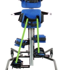 Bir sandalye için birden fazla kullanıcıyla hızlı kurulumu teminen, dik ekstrüzyonun yan tarafında bir ölçüm bandı bulunmaktadır. Bu, terapistin veya ebeveynin, belirli bir kişinin kurulumu sağlamasını teminen, desteklerin doğru yüksekliğe konumlandırılmasını sağlar.