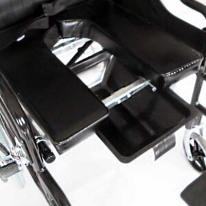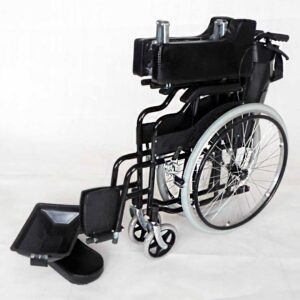 Büyük tekerleklidir,aparatları çıkmadan normal manuel tekerlekli sandalyeler gibi ortadan yukarı çekip katlanır